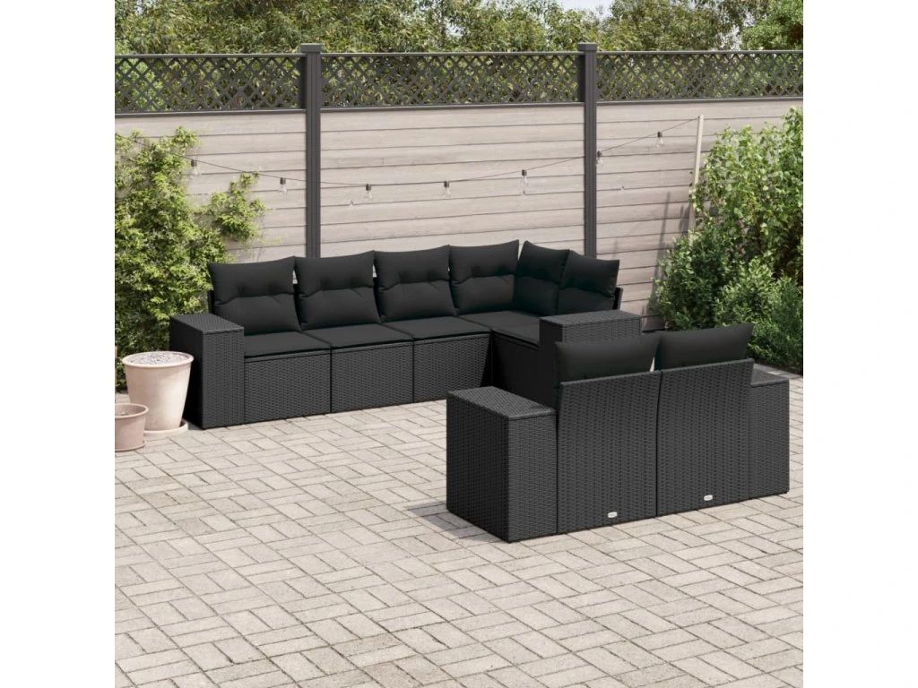 7dílná zahradní sedací souprava s poduškami černá polyratan 3222804