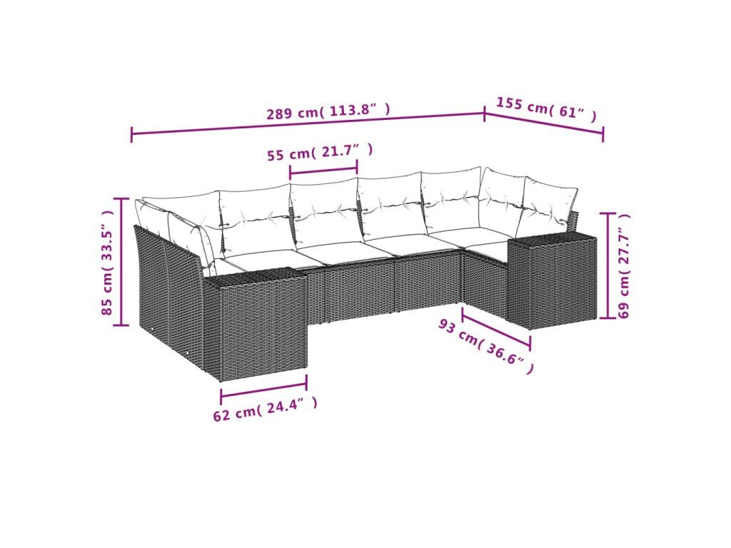 7dílná zahradní sedací souprava s poduškami černá polyratan 3222985