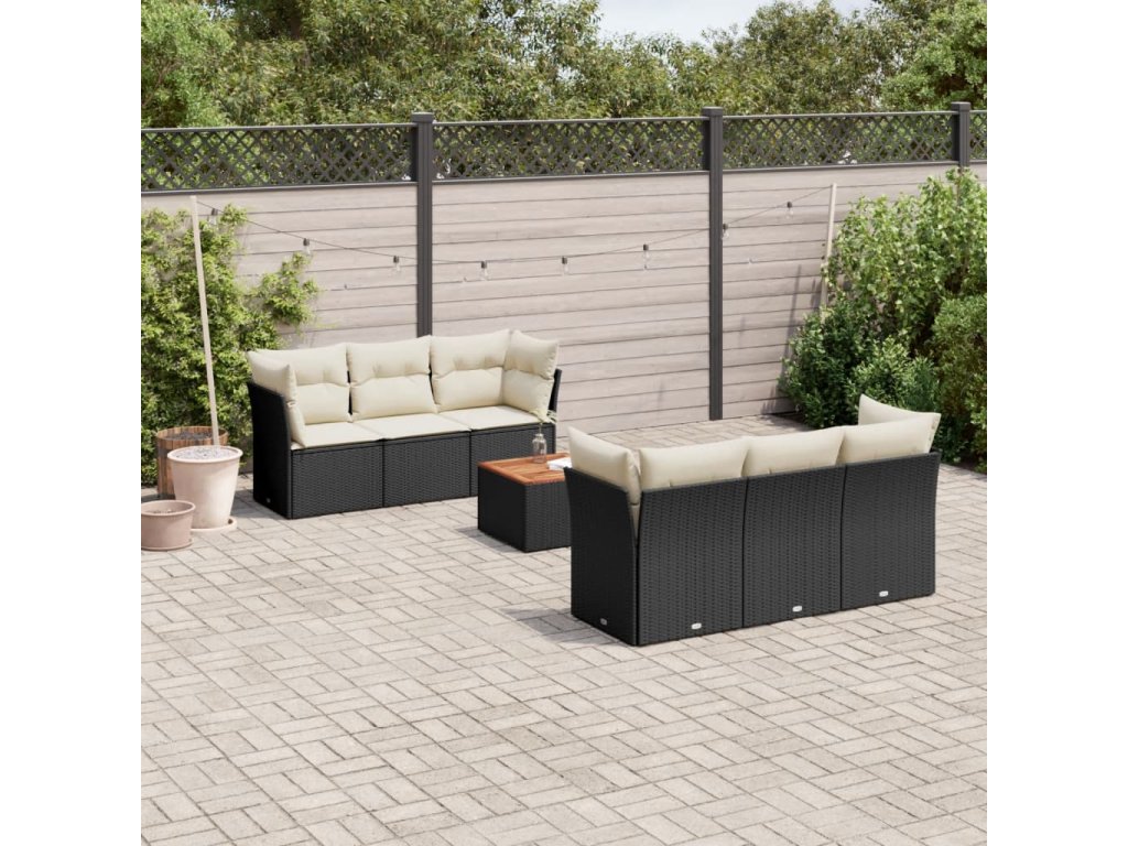 7dílná zahradní sedací souprava s poduškami černá polyratan 3223487