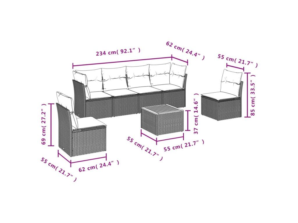 Tato zahradní sedací souprava je dokonalým doplňkem vaší zahrady, terasy nebo dvorku a poskytne vám pohodlné a příjemné místo, kde si můžete povídat s rodinou a přáteli nebo jen tak odpočívat a užívat si pobyt venku.
