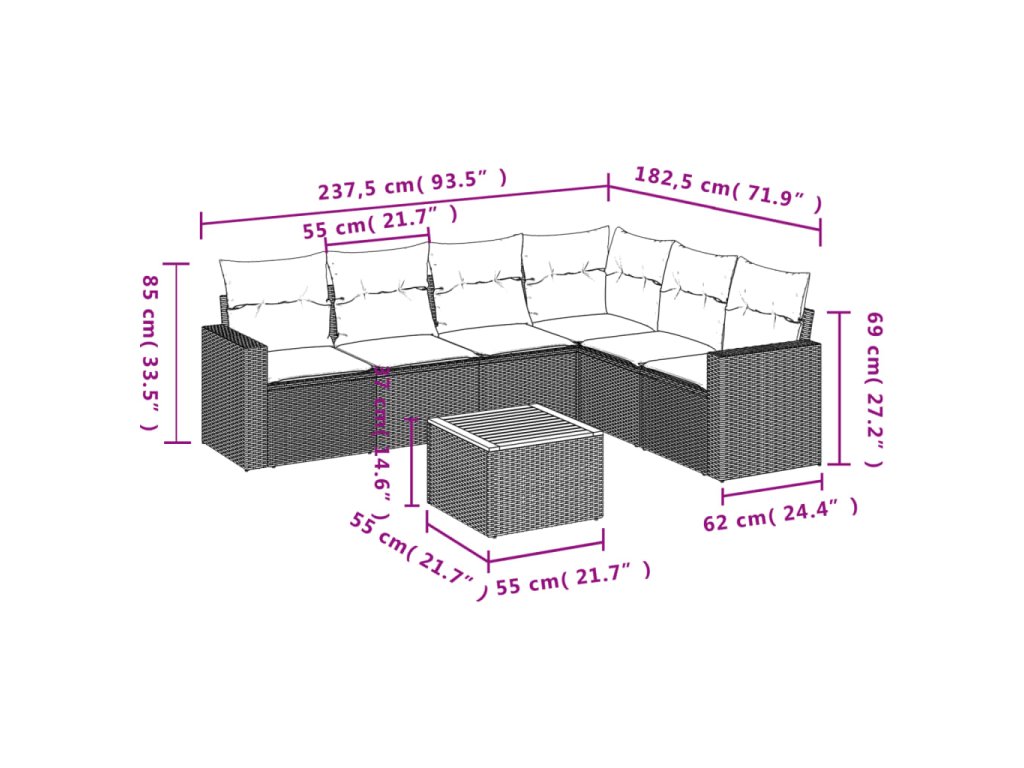 Tato zahradní sedací souprava je dokonalým doplňkem vaší zahrady, terasy nebo dvorku a poskytne vám pohodlné a příjemné místo, kde si můžete povídat s rodinou a přáteli nebo jen tak odpočívat a užívat si pobyt venku.