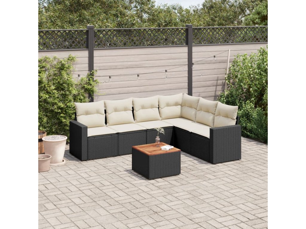7dílná zahradní sedací souprava s poduškami černá polyratan 3224138