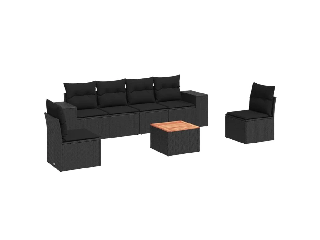 7dílná zahradní sedací souprava s poduškami černá polyratan 3225390