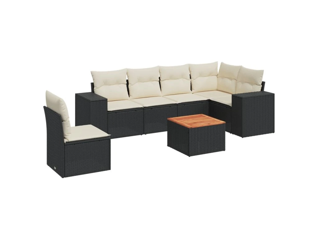 7dílná zahradní sedací souprava s poduškami černá polyratan 3225468