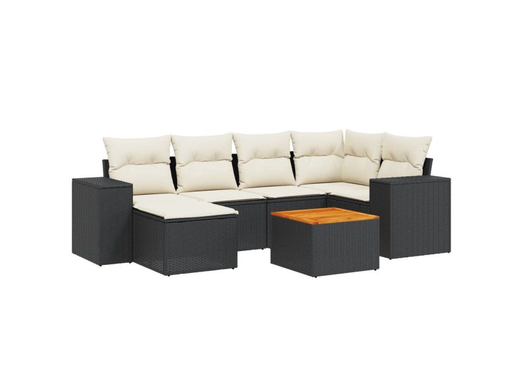 7dílná zahradní sedací souprava s poduškami černá polyratan 3225545