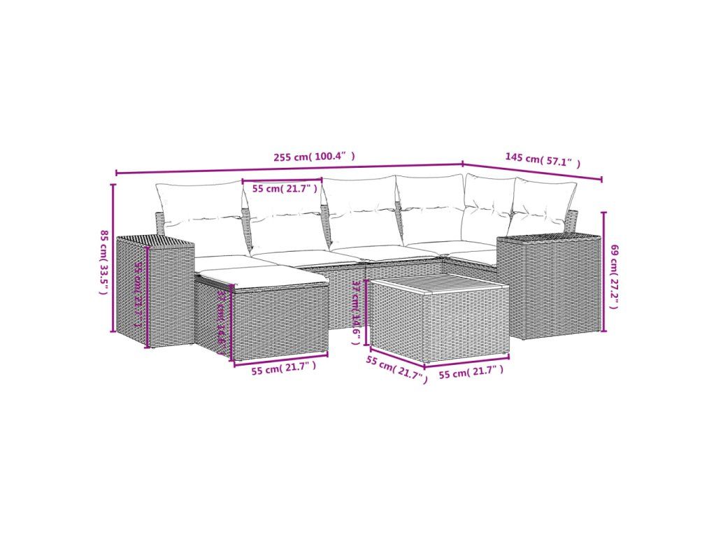 Tato zahradní sedací souprava je dokonalým doplňkem vaší zahrady, terasy nebo dvorku a poskytne vám pohodlné a příjemné místo, kde si můžete povídat s rodinou a přáteli nebo jen tak odpočívat a užívat si pobyt venku.