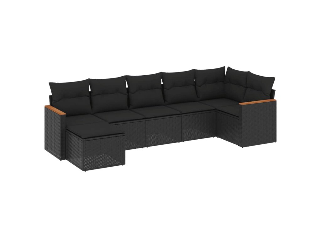 7dílná zahradní sedací souprava s poduškami černá polyratan 3226188