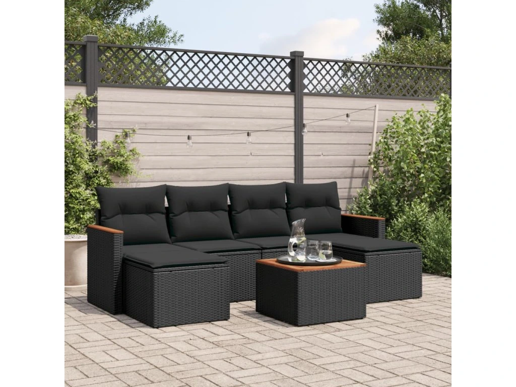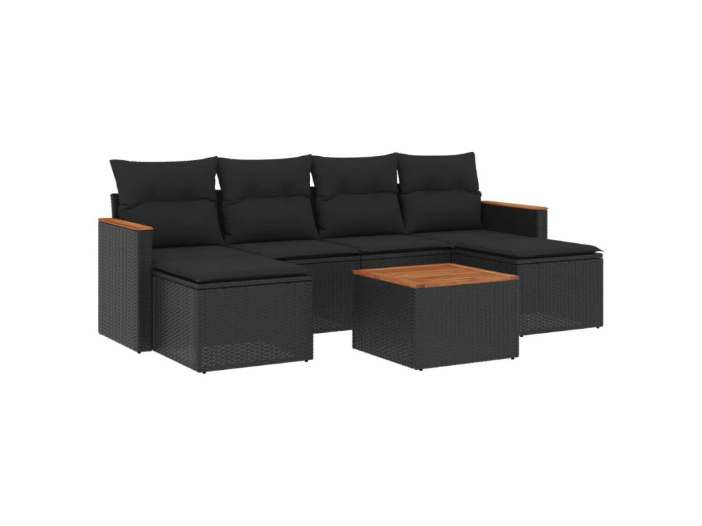 7dílná zahradní sedací souprava s poduškami černá polyratan 3226223