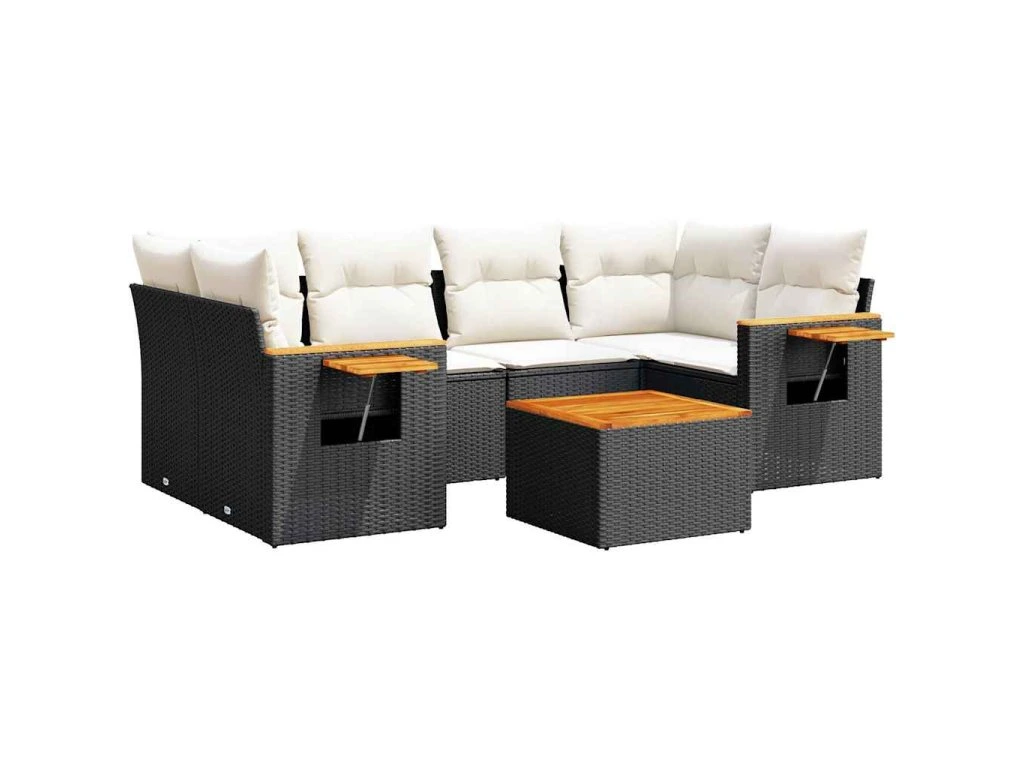 7dílná zahradní sedací souprava s poduškami černá polyratan 3226637