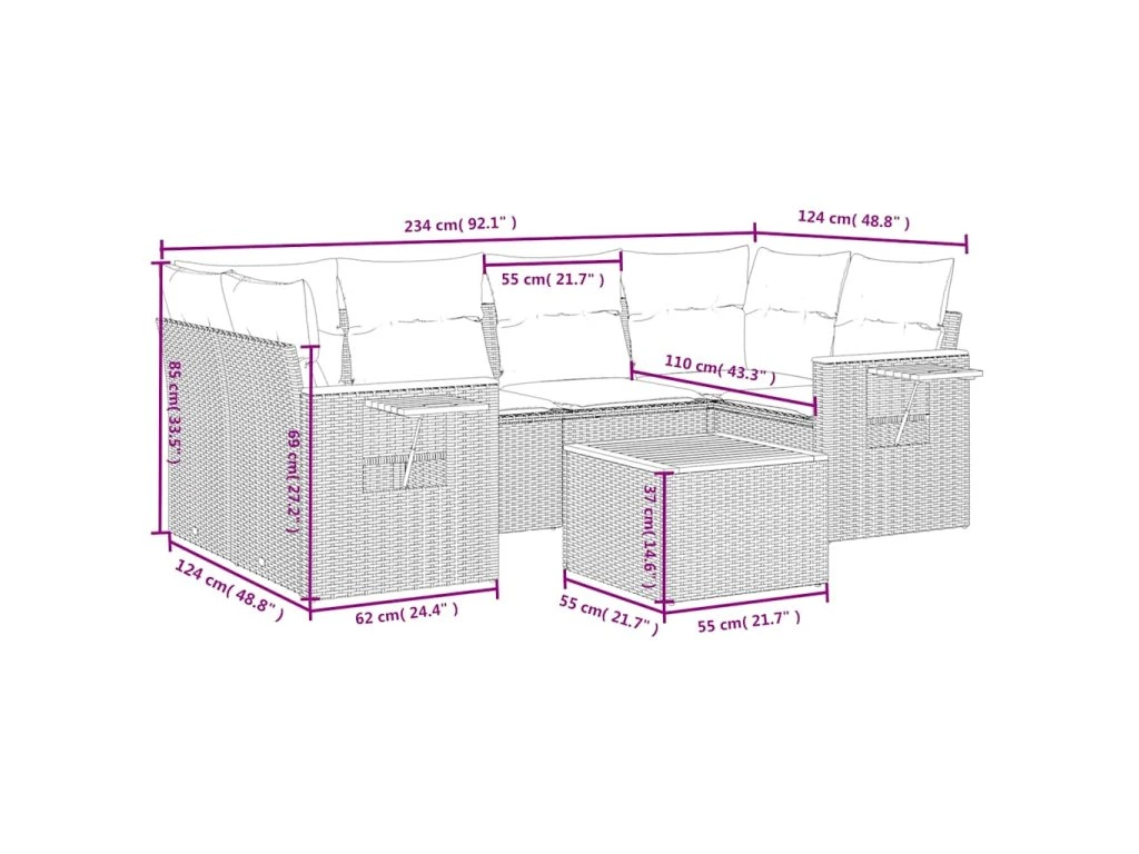 Tato zahradní sedací souprava je dokonalým doplňkem vaší zahrady, terasy nebo dvorku a poskytne vám pohodlné a příjemné místo, kde si můžete povídat s rodinou a přáteli nebo jen tak odpočívat a užívat si pobyt venku.