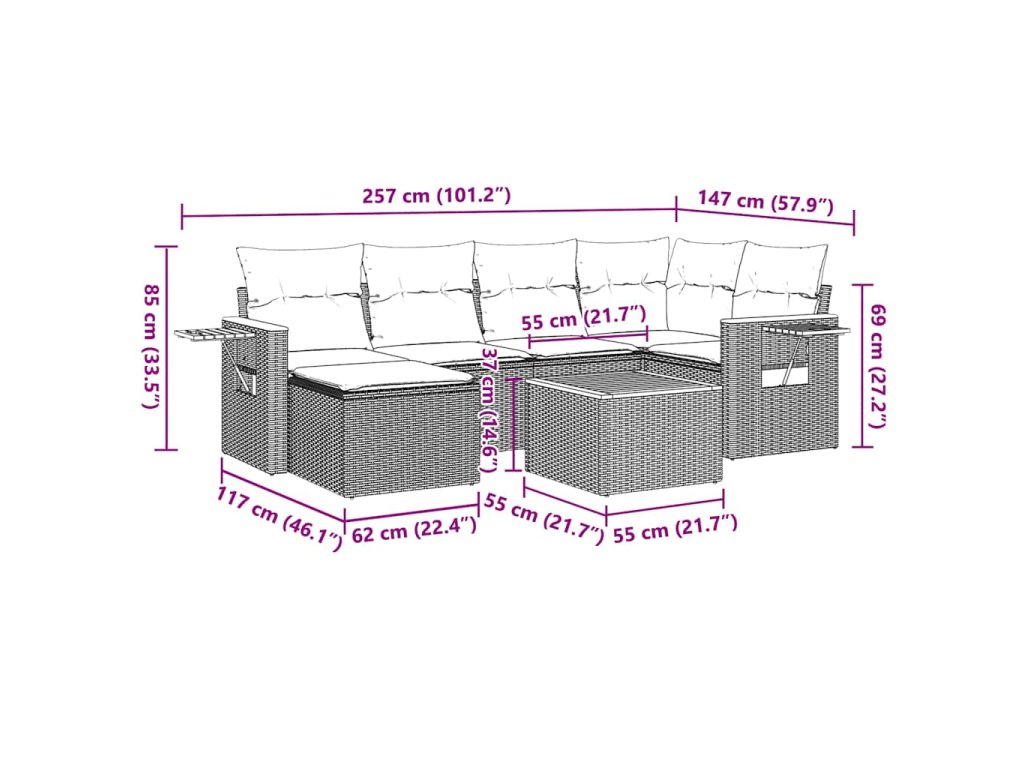 Tato zahradní sedací souprava je dokonalým doplňkem vaší zahrady, terasy nebo dvorku a poskytne vám pohodlné a příjemné místo, kde si můžete povídat s rodinou a přáteli nebo jen tak odpočívat a užívat si pobyt venku.