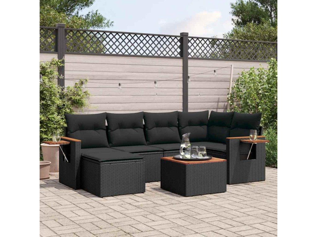 7dílná zahradní sedací souprava s poduškami černá polyratan 3227021