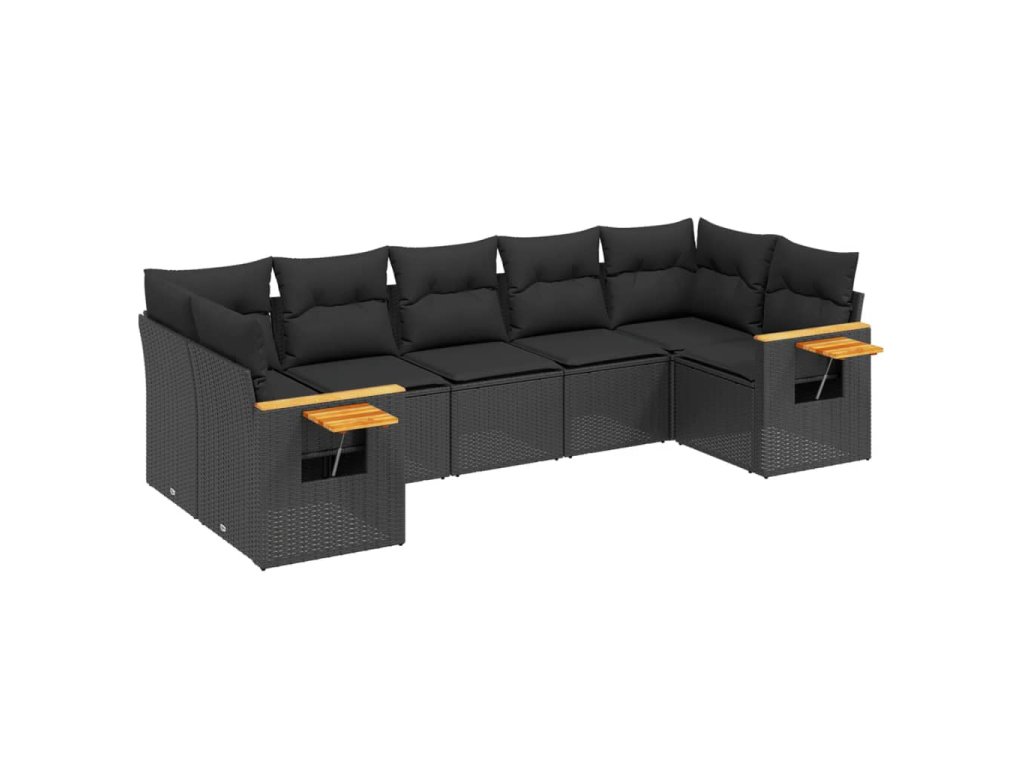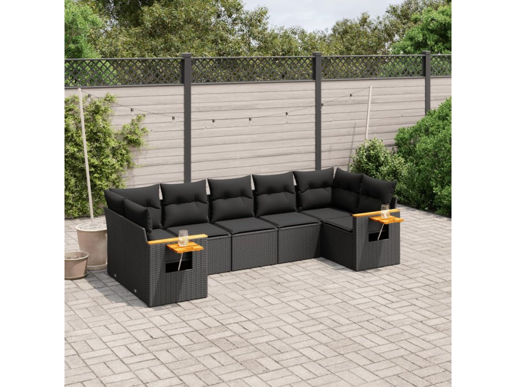 7dílná zahradní sedací souprava s poduškami černá polyratan 3227105