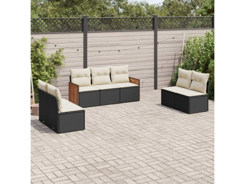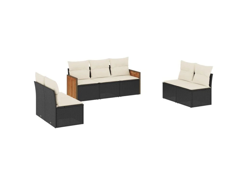 7dílná zahradní sedací souprava s poduškami černá polyratan 3227554