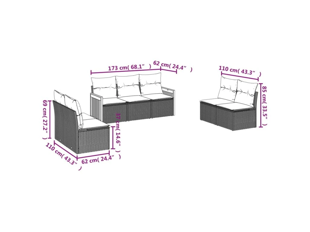 Tato zahradní sedací souprava je dokonalým doplňkem vaší zahrady, terasy nebo dvorku a poskytne vám pohodlné a příjemné místo, kde si můžete povídat s rodinou a přáteli nebo jen tak odpočívat a užívat si pobyt venku.
