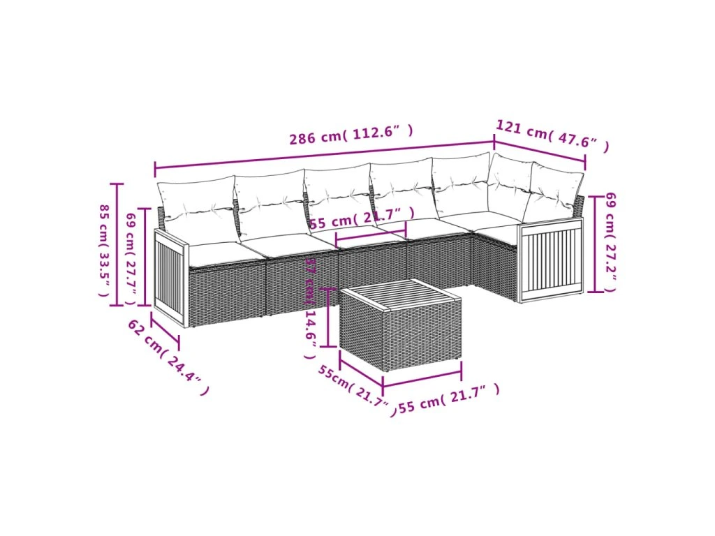 Tato zahradní sedací souprava je dokonalým doplňkem vaší zahrady, terasy nebo dvorku a poskytne vám pohodlné a příjemné místo, kde si můžete povídat s rodinou a přáteli nebo jen tak odpočívat a užívat si pobyt venku.
