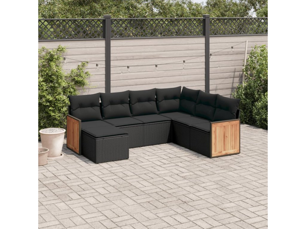 7dílná zahradní sedací souprava s poduškami černá polyratan 3227882