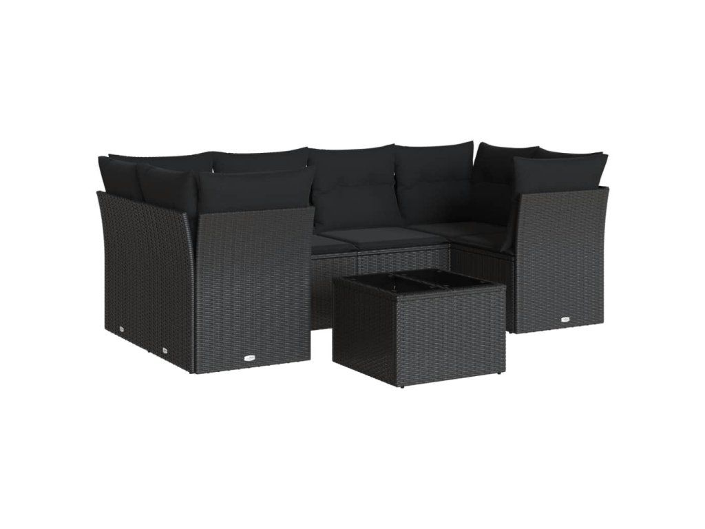 7dílná zahradní sedací souprava s poduškami černá polyratan 3249104