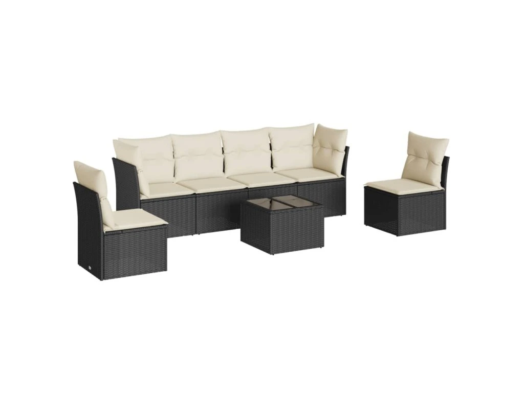 7dílná zahradní sedací souprava s poduškami černá polyratan 3249215