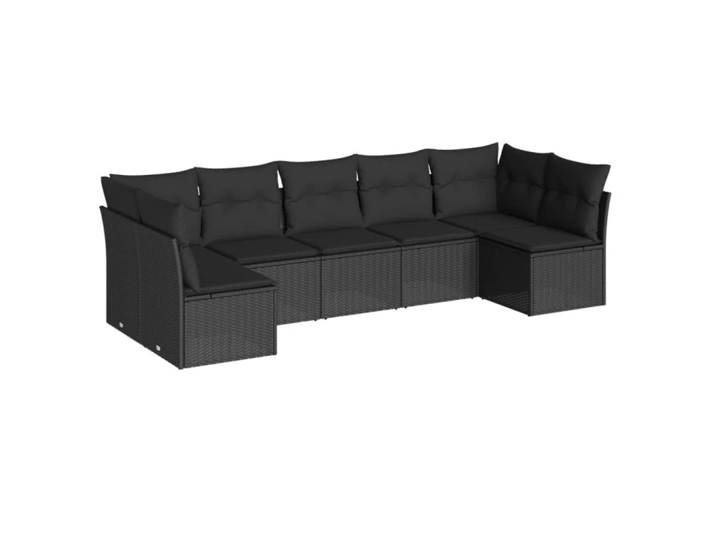 7dílná zahradní sedací souprava s poduškami černá polyratan 3249264