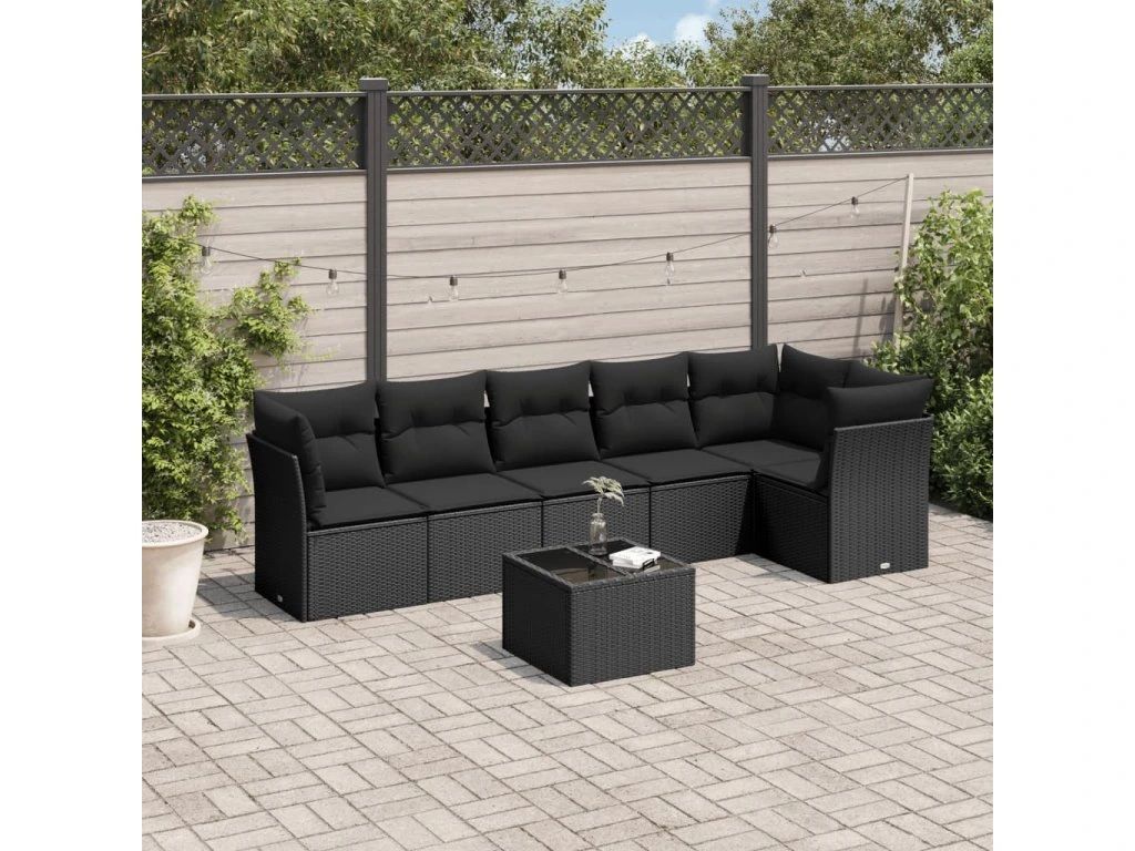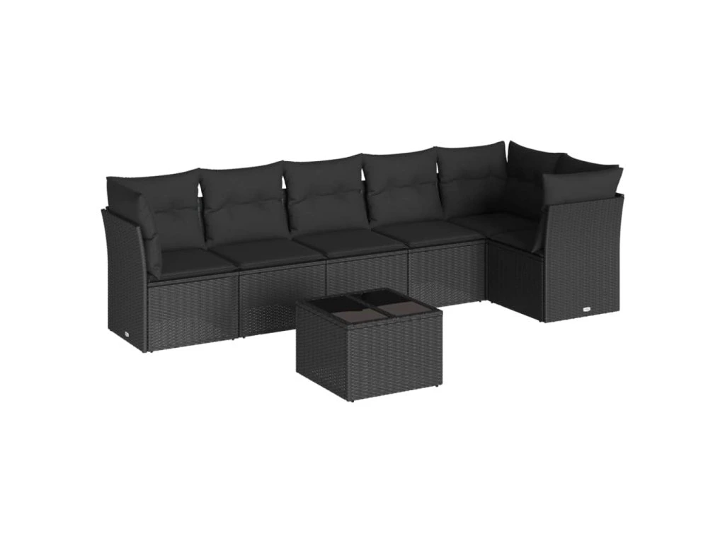 7dílná zahradní sedací souprava s poduškami černá polyratan 3249504