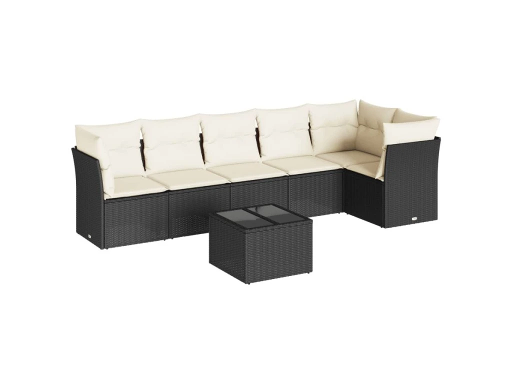 7dílná zahradní sedací souprava s poduškami černá polyratan 3249505