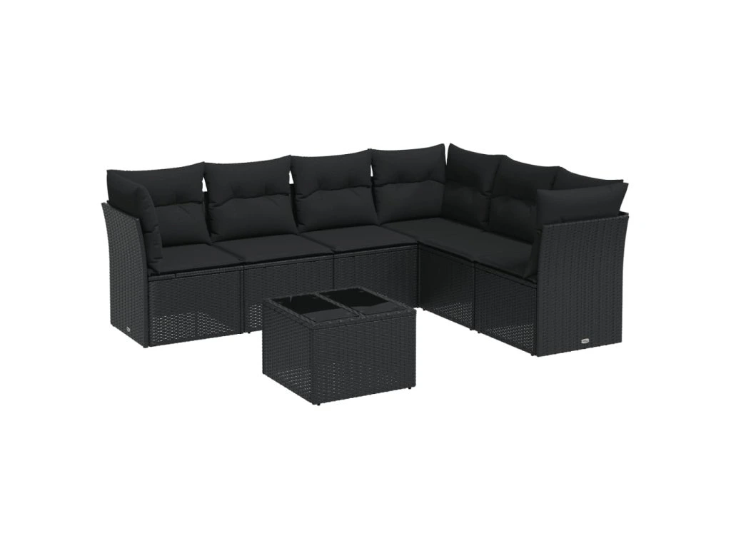 7dílná zahradní sedací souprava s poduškami černá polyratan 3249524