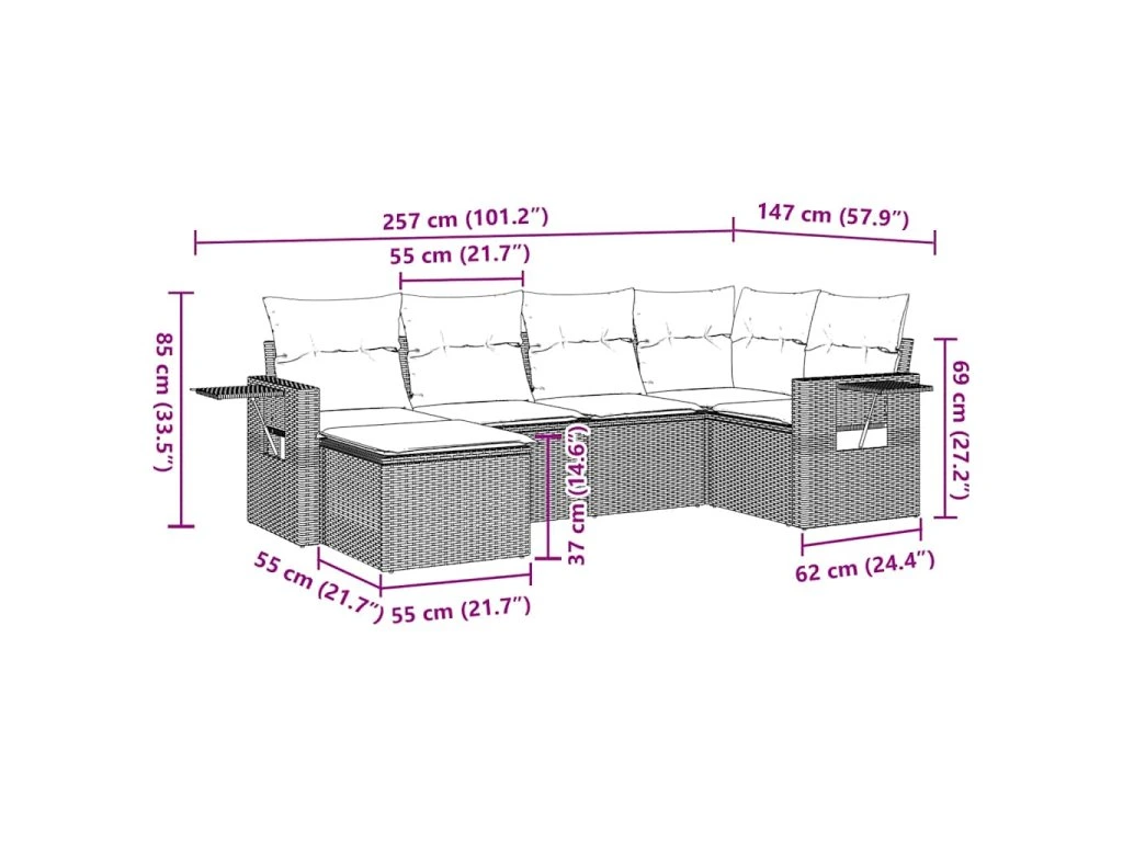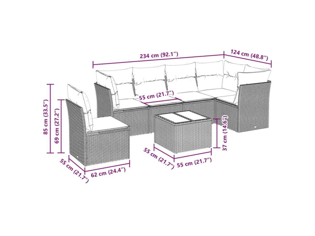 Tato zahradní sedací souprava je dokonalým doplňkem vaší zahrady, terasy nebo dvorku a poskytne vám pohodlné a příjemné místo, kde si můžete povídat s rodinou a přáteli nebo jen tak odpočívat a užívat si pobyt venku.