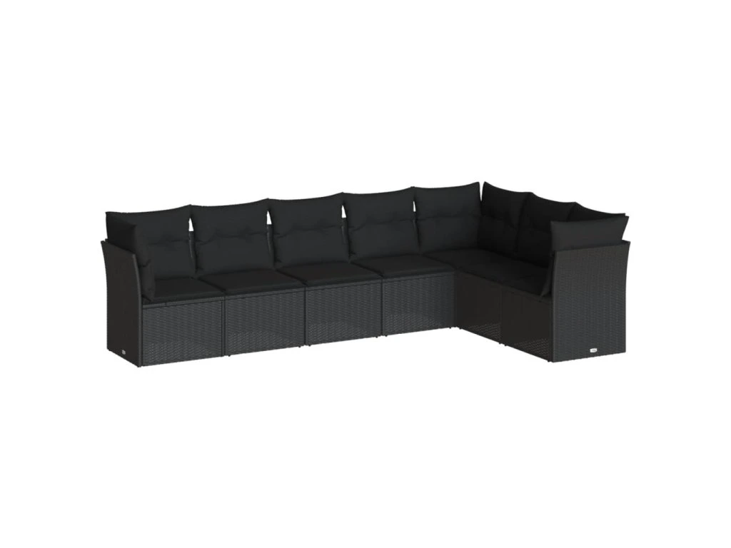 7dílná zahradní sedací souprava s poduškami černá polyratan 3249574