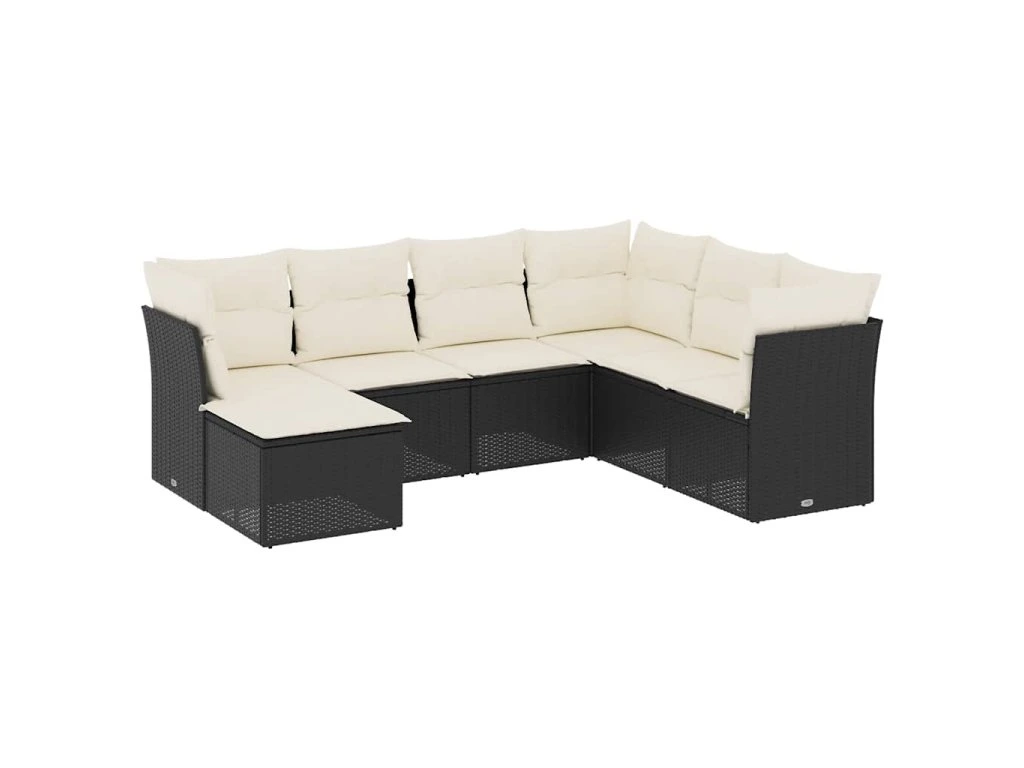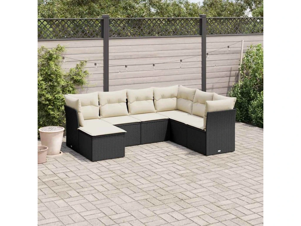 7dílná zahradní sedací souprava s poduškami černá polyratan 3249825