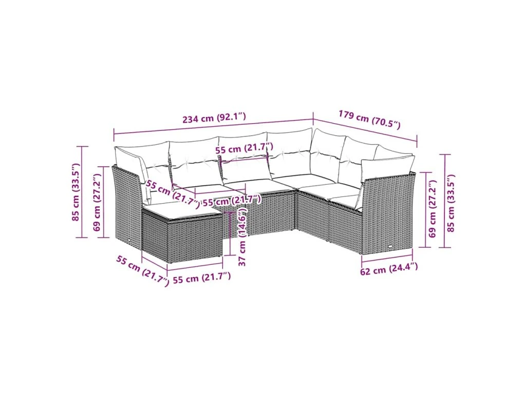 Tato zahradní sedací souprava je dokonalým doplňkem vaší zahrady, terasy nebo dvorku a poskytne vám pohodlné a příjemné místo, kde si můžete povídat s rodinou a přáteli nebo jen tak odpočívat a užívat si pobyt venku.