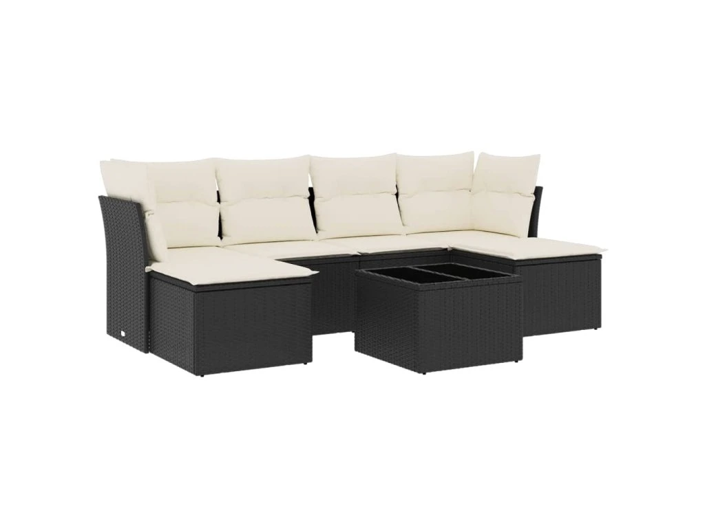 7dílná zahradní sedací souprava s poduškami černá polyratan 3249855