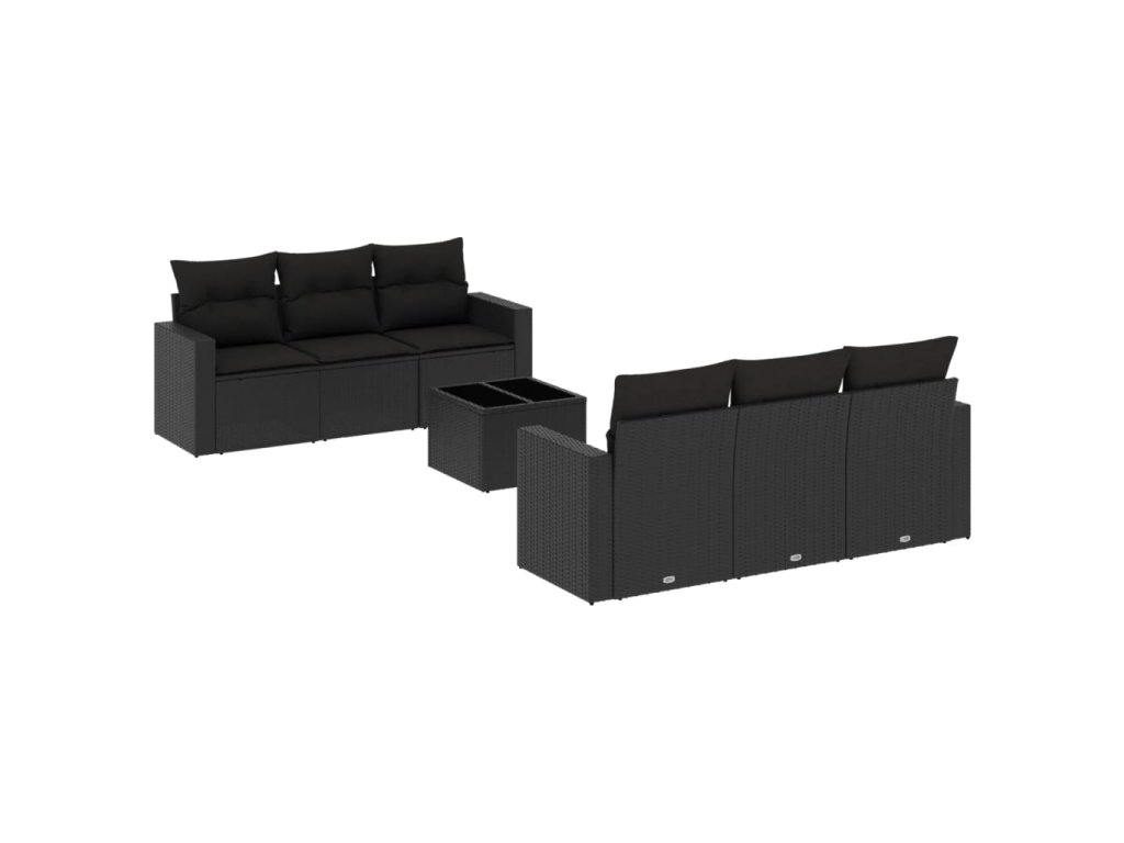 7dílná zahradní sedací souprava s poduškami černá polyratan 3251042