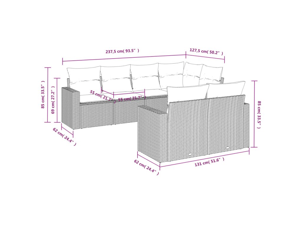 Tato zahradní sedací souprava je dokonalým doplňkem vaší zahrady, terasy nebo dvorku a poskytne vám pohodlné a příjemné místo, kde si můžete povídat s rodinou a přáteli nebo jen tak odpočívat a užívat si pobyt venku.