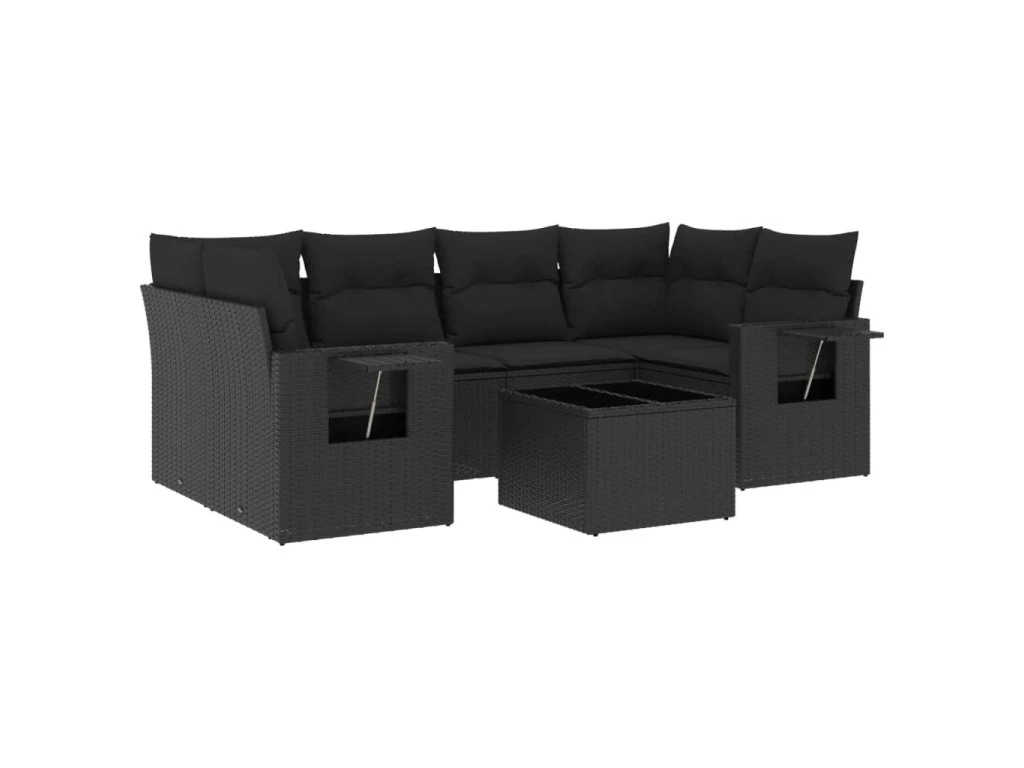 7dílná zahradní sedací souprava s poduškami černá polyratan 3252252
