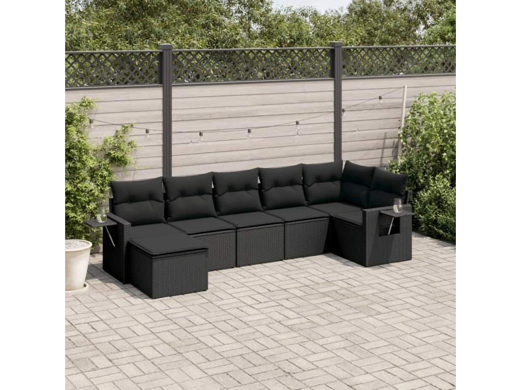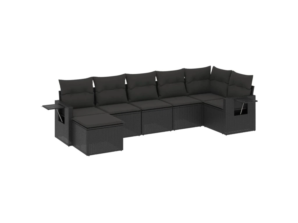7dílná zahradní sedací souprava s poduškami černá polyratan 3252812