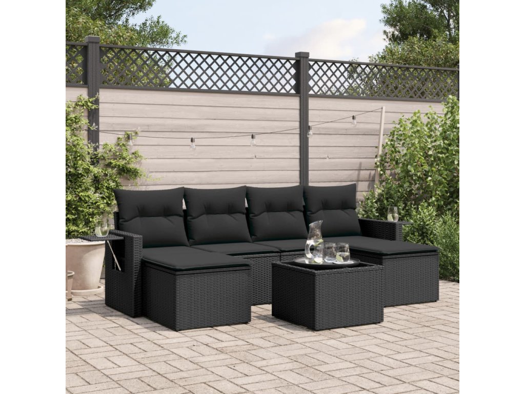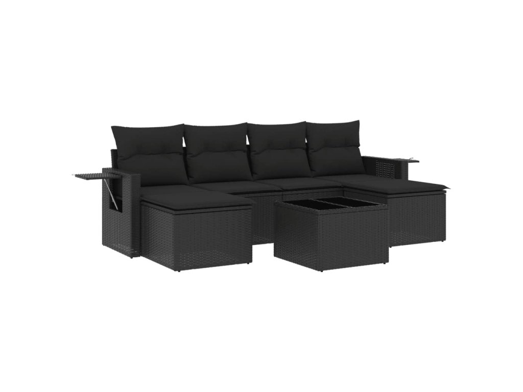 7dílná zahradní sedací souprava s poduškami černá polyratan 3252862