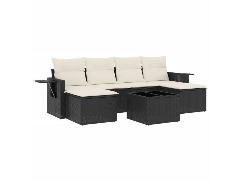 7dílná zahradní sedací souprava s poduškami černá polyratan 3252863