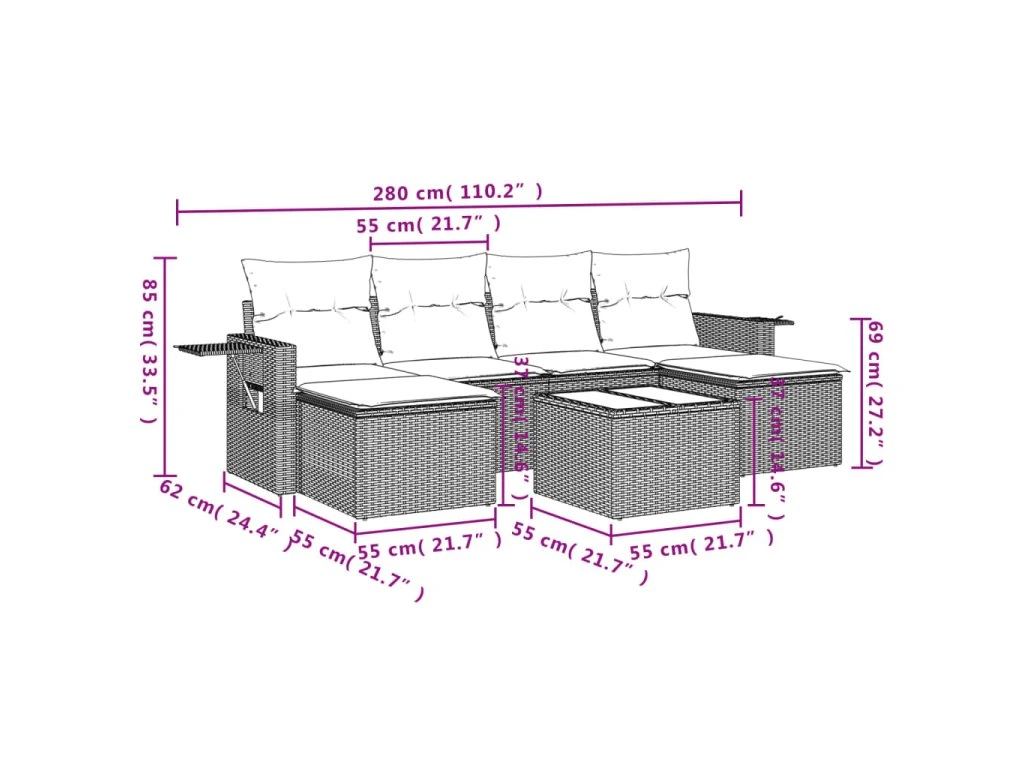 Tato zahradní sedací souprava je dokonalým doplňkem vaší zahrady, terasy nebo dvorku a poskytne vám pohodlné a příjemné místo, kde si můžete povídat s rodinou a přáteli nebo jen tak odpočívat a užívat si pobyt venku.