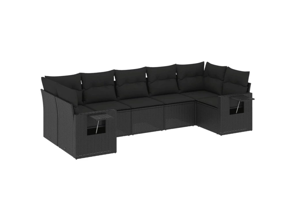 7dílná zahradní sedací souprava s poduškami černá polyratan 3252922