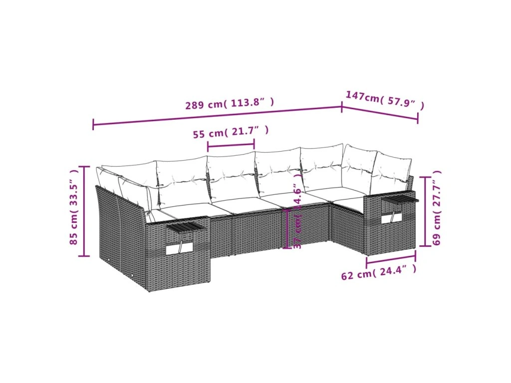 Tato zahradní sedací souprava je dokonalým doplňkem vaší zahrady, terasy nebo dvorku a poskytne vám pohodlné a příjemné místo, kde si můžete povídat s rodinou a přáteli nebo jen tak odpočívat a užívat si pobyt venku.