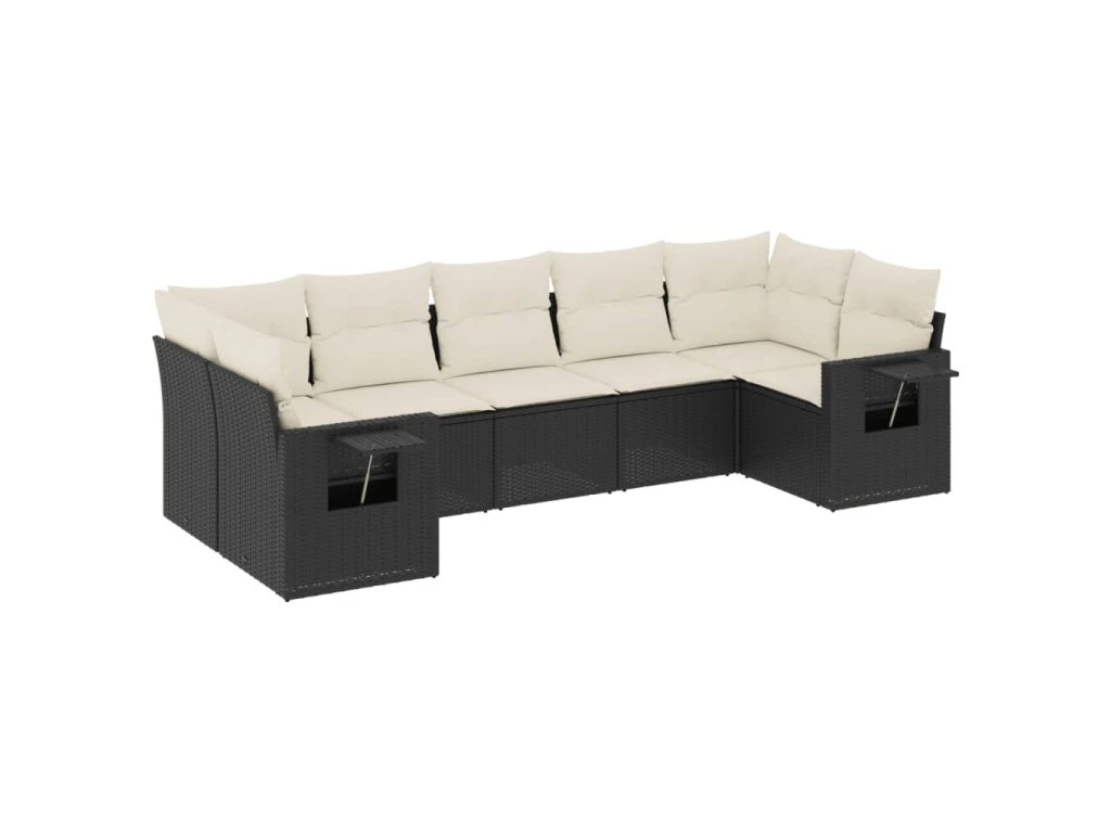 7dílná zahradní sedací souprava s poduškami černá polyratan 3252923