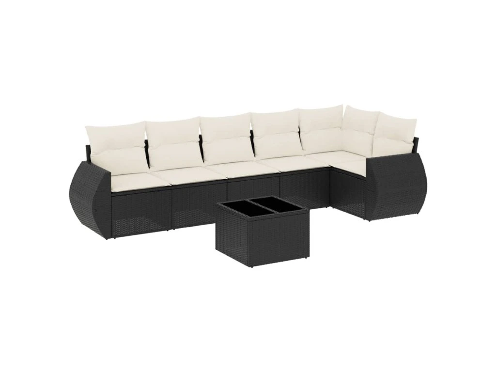 7dílná zahradní sedací souprava s poduškami černá polyratan 3253733