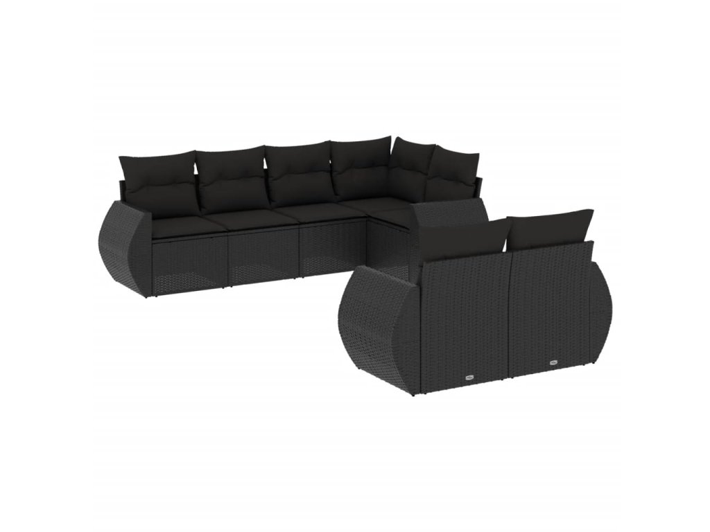 7dílná zahradní sedací souprava s poduškami černá polyratan 3253942