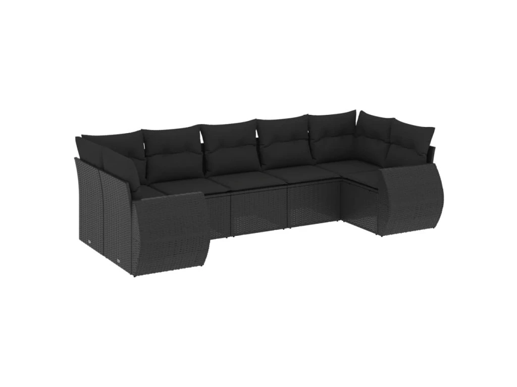 7dílná zahradní sedací souprava s poduškami černá polyratan 3254122