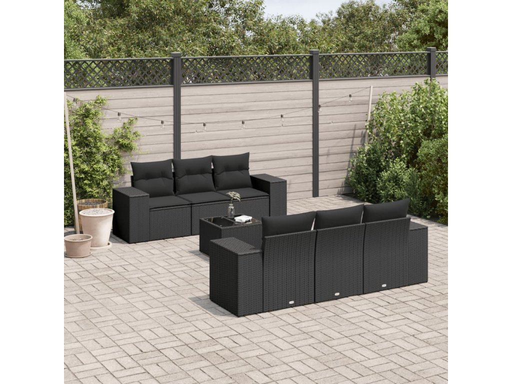 7dílná zahradní sedací souprava s poduškami černá polyratan 3254642