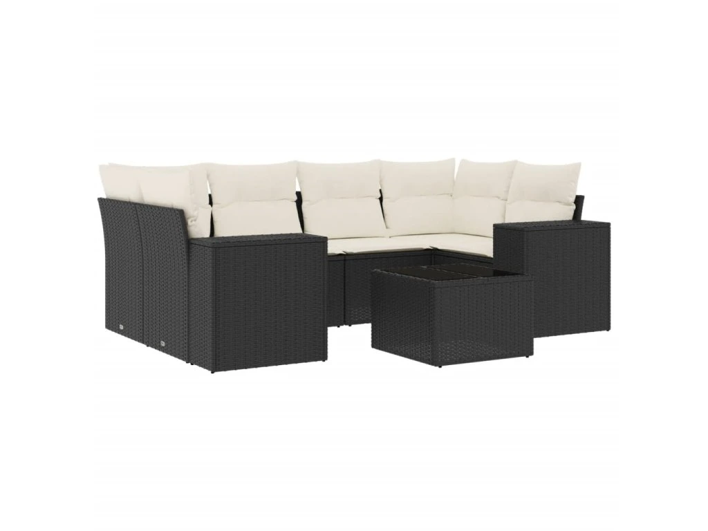 7dílná zahradní sedací souprava s poduškami černá polyratan 3254653