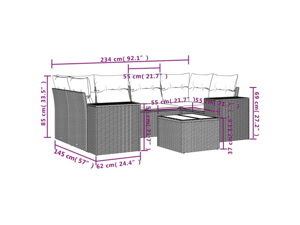 Tato zahradní sedací souprava je dokonalým doplňkem vaší zahrady, terasy nebo dvorku a poskytne vám pohodlné a příjemné místo, kde si můžete povídat s rodinou a přáteli nebo jen tak odpočívat a užívat si pobyt venku.