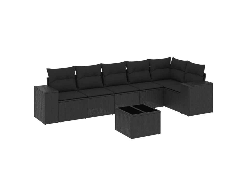7dílná zahradní sedací souprava s poduškami černá polyratan 3254932