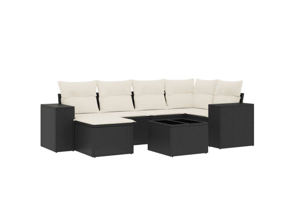 7dílná zahradní sedací souprava s poduškami černá polyratan 3255203